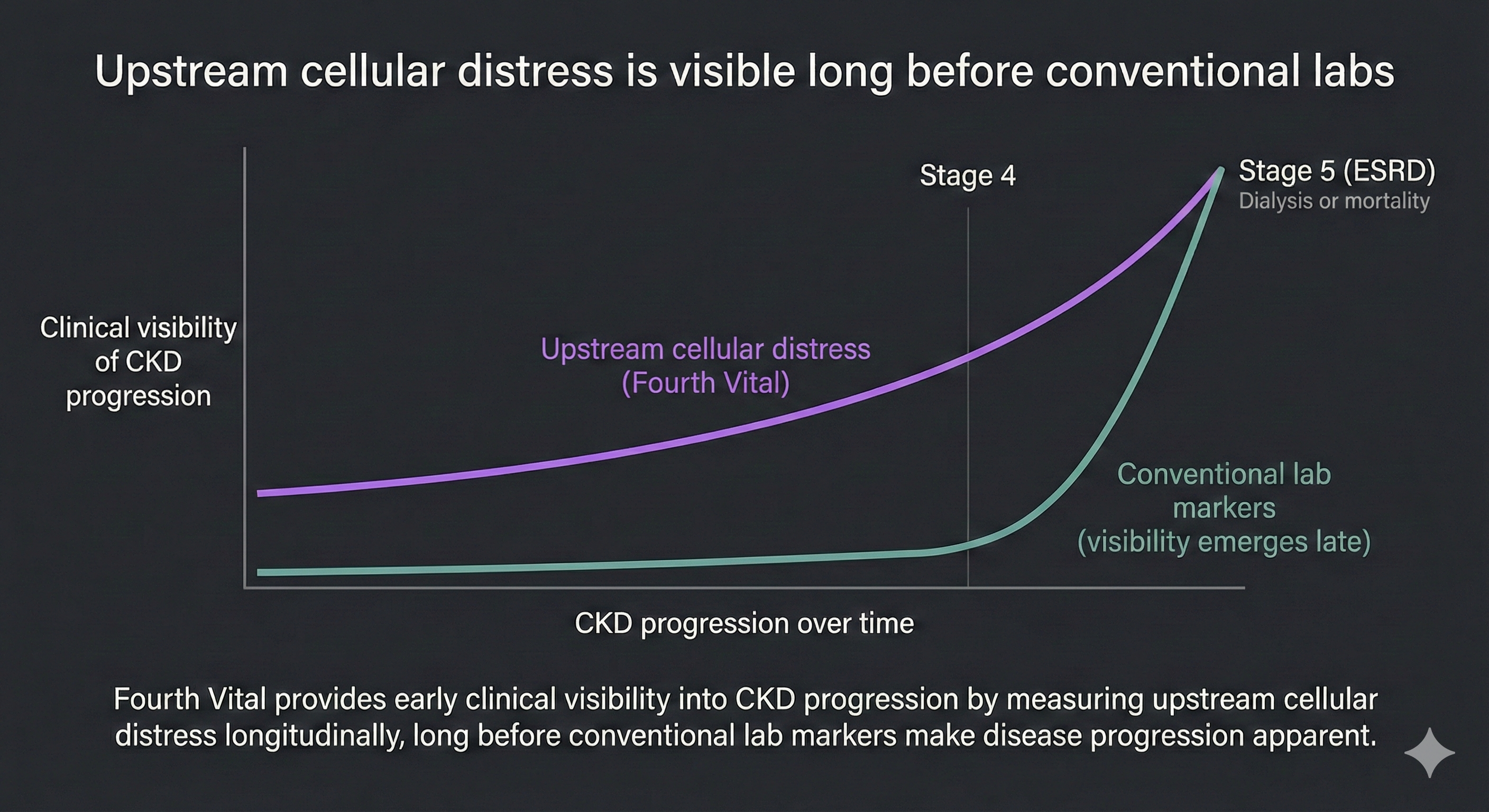 Fourth Vital is building the upstream AI infrastructure layer for kidney risk, grounded in a clinically established physiological signal of systemic cellular distress that is known to predate kidney damage.